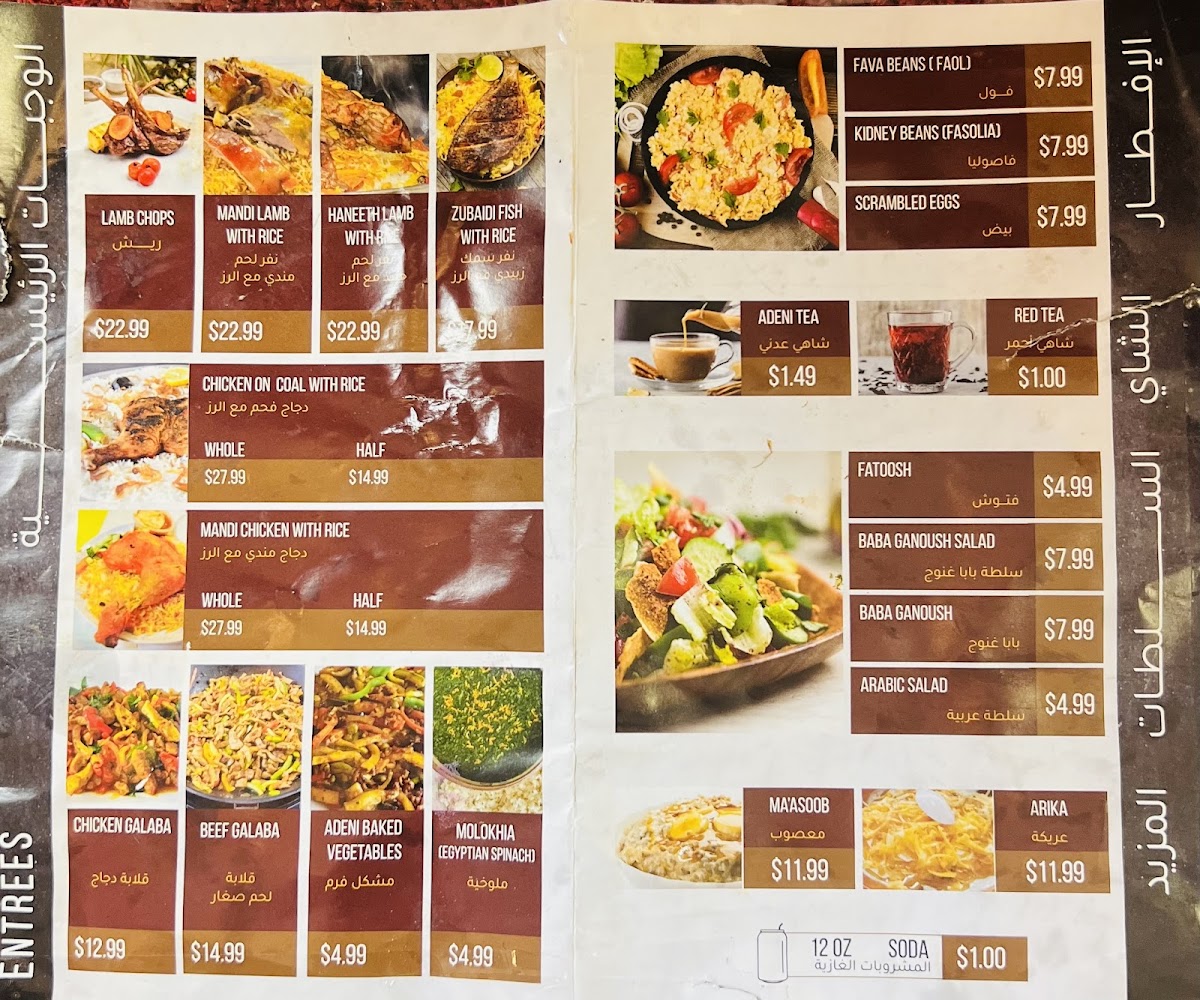 The menu suits those who appreciate food that connects to cultural roots and enjoys meals that linger with warmth and comfort. The atmosphere of the restaurant—friendly and inviting—naturally fits the tasting experience here, where portion sizes are generous and the flavors honest. Whether sharing a meal with family or enjoying a quiet moment with a simple dish, the menu supports an unhurried, genuine appreciation of Yemeni culinary traditions.
